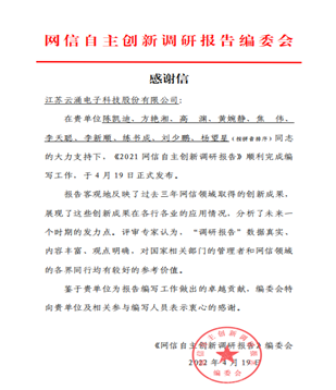 編委會向云涌發來感謝信,感謝云涌科技對報告編寫的支持。