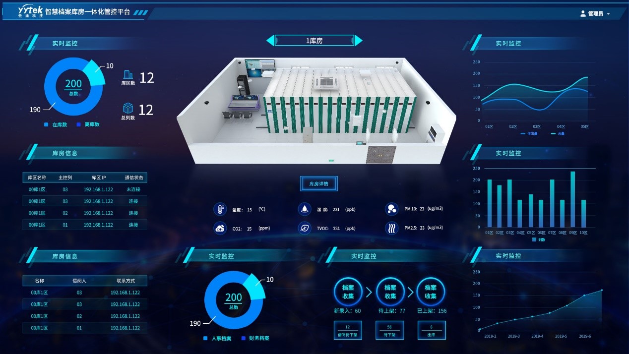? ? ? 智慧庫房數字一體化管控平臺是以物聯網技術為支撐,將實體檔案管理、檔案存儲設備管理、檔案庫房環境管理、檔案庫房安全防范管理等多種功能集中于一體的管理系統,它為實現檔案管理的標準化、規范化、科學化、效能化提供了一套有力的工具,大幅提高檔案管理效率,保證檔案的安全與完整。