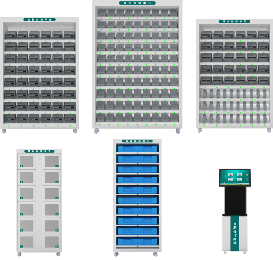 在設(shè)備方面,可提供單相存儲(chǔ)單位、輔材存儲(chǔ)單元、混合存儲(chǔ)單元、三相存儲(chǔ)單元以及箱表存儲(chǔ)單元等,根據(jù)庫房實(shí)際情況按需組合,存儲(chǔ)單元的多樣性,極大地滿足了現(xiàn)場(chǎng)空間的使用需求。而且結(jié)合智能操作終端的使用,一線業(yè)務(wù)人員在領(lǐng)用、存儲(chǔ)計(jì)量資產(chǎn)時(shí),只需在終端上點(diǎn)擊工單,相應(yīng)周轉(zhuǎn)柜儲(chǔ)位便會(huì)自動(dòng)點(diǎn)亮,并伴隨語音播報(bào),快速引導(dǎo)人員完成相關(guān)業(yè)務(wù)操作,極大提高了一線業(yè)務(wù)人員的工作效率。