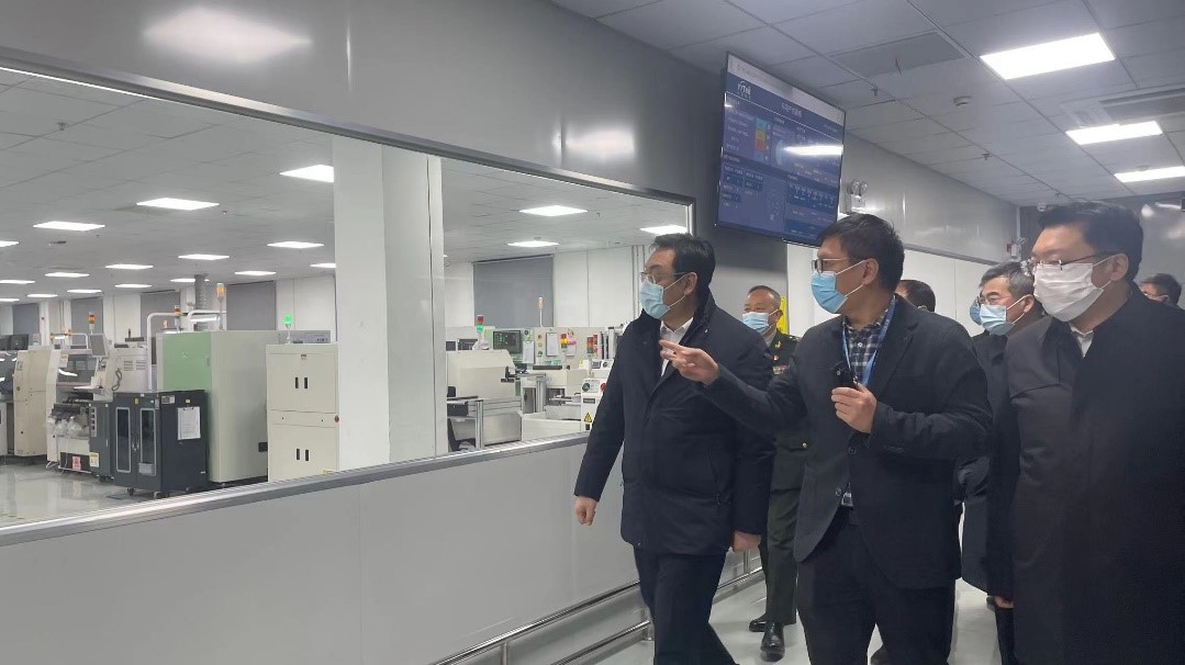 ? ? ? 隨后,朱書記等一行領導走進我司智能制造車間進行考察,高總重點介紹了公司SMT智能化生產線、“5G+AGV”搬運機器人場景應用等智能車間運行的情況。朱書記對公司的發展以及制造中心的智能化水平給予了充分的肯定,并鼓勵公司借力資本市場,繼續推進科技創新,實現產品的高價值、高顏值、高效率,促進云涌科技高質量發展。